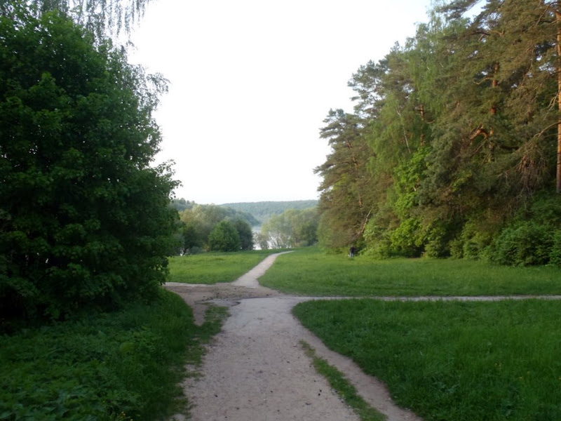 Потом еду и думаю, а ты вообще-то помнишь с какой такой тропинки ты на шоссе выехал? Ладно, на Оке комп показывал, что я прокатил 32 с копейками. Значит нужно смотреть эту тропу где-то на 58-60 километре. Еду смотрю указатель на храм, который повстречался мне на пути туда, но с этой стороны на указателе еще есть и другая надпись "Музей Болотова А.Т." (я как-то упоминал про его книгу, как рекомендованную к чтению). Вот куда нужно будет обязательно скататься, когда будет оказия. Но географического кретинизма у меня нет, так что я таки отыскал въезд в лес, но уже смеркалось, так что я путь по лесу преодолел пешком опираясь на велосипед. Был изрядно погрызан комарами, но таки добрался до дачи уже в густых сумерках.
