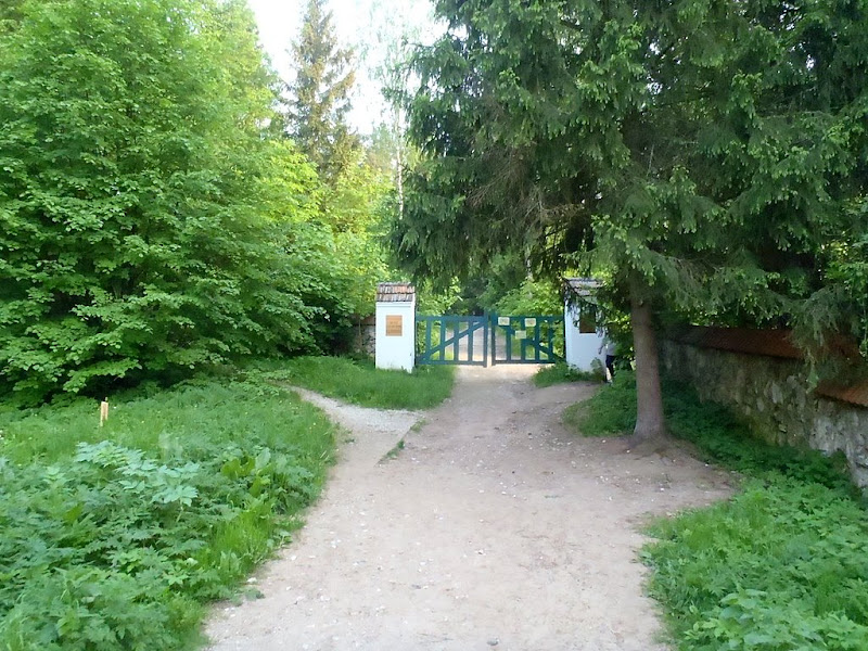 Только я тронулся в указанном направлении, как меня встретил затяжной... спуск, оно и понятно, чай к речке еду, но какой это съезд! Я распластался по велику, покручиваю педальки и вижу как на компе высвечивает 60 - 62 - 64км/ч (максималкой оказалось 66.38км/ч), вот вижу эти цифирки и думаю, блин... мне же еще в эту горку взбираться... Потом еще один подъем - тяжелый, потом спуск, еще подъем, да такой, что я не дотянув метров 15 до верхушки сошел с велика. Поправил штаны, перемялся с ноги на ногу и покатил дальше. Проехав с километр увидел заборчик, замечательные домики и въезд в музей-усадьбу Поленово. Спрашиваю у охранника, где здесь речка, он мне, речка то там, да на великах нельзя, только пешком. Ну я сослался на то, что уже 30км прокатил только чтобы усадьбу с речкой обозреть и обратно еще столько же ехать. Ну тут охранник и сжалился :)