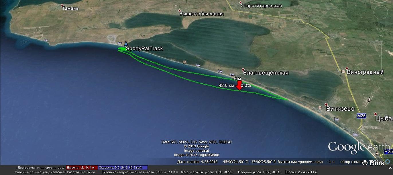 Прошел 67км за 2:40. Средняя скорость 25.19 км/ч. Максималка 43.19 км/ч. Вот так и прокатился - трек здесь