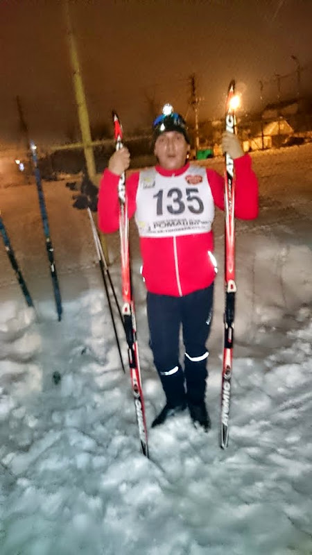 - Сережка, ты куда пропал? Ты же за мной сопел до тусовочного перекрестка! - Да, пап, я два раза упал, один раз на тусовочном перекрестке, второй раз на пятикилометровой срезке. Вот, оказывается, куда сынуля делся. Дальше мы попили чаю со спонсорскими тортиками, пофотографировались. Сережка поторопился и сдал свой номер еще до фотографий - отсюда у нас одинаковый номер, а Сережкин номер был 136. Из рассказа Сережки, я понял, что он очень лихо меня догнал, встал мне в хвост, но при этом так запыхался, что после подъема навернулся, потом еще раз. Очень рано спуртанул и потратил рано все силы. Сегодня вечерком проанализируем ход гонки. Скольжение было так себе, наверное худшее за весь сезон или около того - 50-60%. Проката не было, так что результат вполне закономерный - 20:45, я надеялся всетаки выйти из 20 мин. Сережка с двумя падениями в восемнадцати секундах от меня - 21:03, так что если ему поставить технику и тактику - будет тот еще лось. Хорошее мероприятие - нам нравится. Хотелось бы в этом году посетить все этапы. Посмотрим, как получится. | Поучаствовали мы вчера с Сережкой в лыжных соревнованиях. Погода теплая, все течет и после снегопадов. Намазал лыжи Swix CH8, хотя нужно было более фтористой мазать и более теплой. В 18.34 я сел на электричку на Тимирязевской, а в это самое время Аня села с Сережкой и лыжным скарбом в машину, и направились в Ромашково. Переоделись, зарегистрировались, оплатили стартовый взнос, настроили фонарики, посмотрели финиш, его слегка изменили посравнению с предыдущими годами, и пошли на старт. Памятуя, как меня Сережка сделал три дня назад на лыжах, я ему предложил ехать вперед меня, но Сережка отказался. Так что из нашей парочки первым поехал я. Снег очень мокрый, под моей тушкой проваливался и проката хорошего не было, так что пришлось ехать не одношажным, а двушахной ковырялкой.![]() Через километр, как раз перед разгонной Сережка меня догнал, на мои призывы обгонять меня и ехать дальше Сережка отвечал отказом. Пару раз меня обходили как стоячего, так что мне захотелось срочно стать полегче килограмм на 15-20, чтобы тоже так летать. Сережка сидел на хвосте, светил мне в спину фонариком, что напрягало. Едешь и думаешь, мож это не Серега и нужно подвинуться уступить, но с другой стороны просьб подвинуться не озвучено, значит можно спокойно ехать. На развилке три-пять км, свет от Сережкиного фонарика пропал. Еду и думаю, ну и куда делся сынуля?! Мож свернул на три км и хочет их выдать за пять или просто сдался и свернул на три. Так и проехал без проката, просто на дыхалке, пульс высокий был - средний 158 уд/мин, что не удивительно - це ж соревнования. Финишировал. Осмотрелся, где мой Сережка - не видать. Стал ждать и через минутку появился Сережка. |