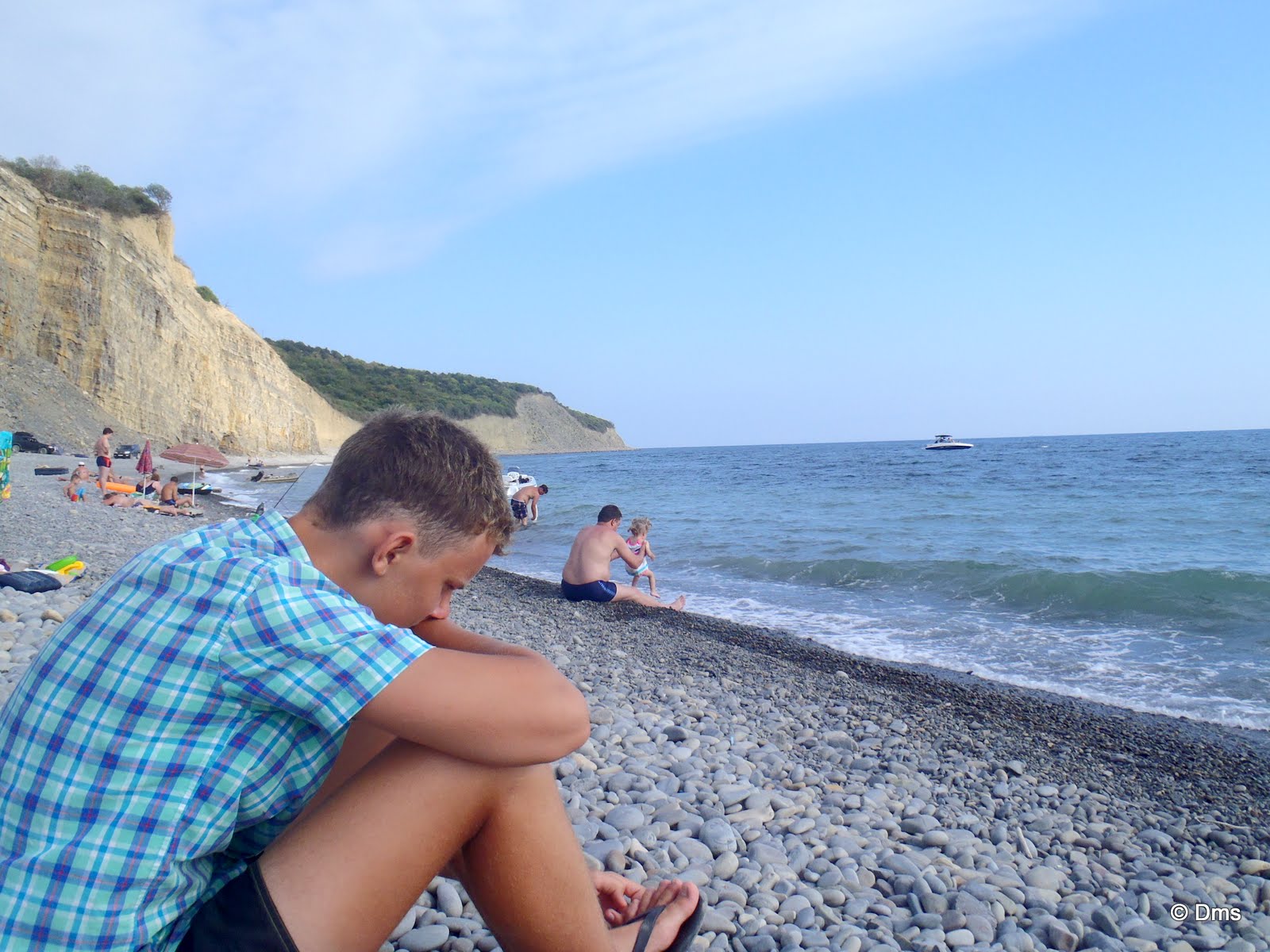 В Дюрсо пляж галечный, но зато и понырять с ластами, масками можно. Но приехав в Дюрсо мы обнаружили, что вся галька занята, да и моречко всё забито, и мало того - грязное. Мы решили съездить на машине до Малого Утриша и там уж искупаться. Дорога там зубодробительная, но на нашей машинке должны доехать, ведь мы на нашем зеленом опеле туда добрались. Поехали.