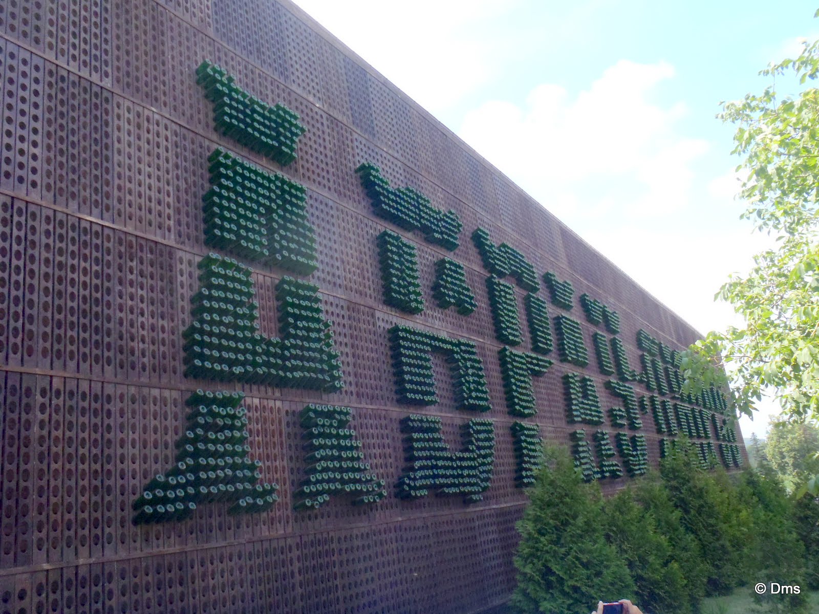 Очень милая надпись на стене из бутылок в пюпитрах.