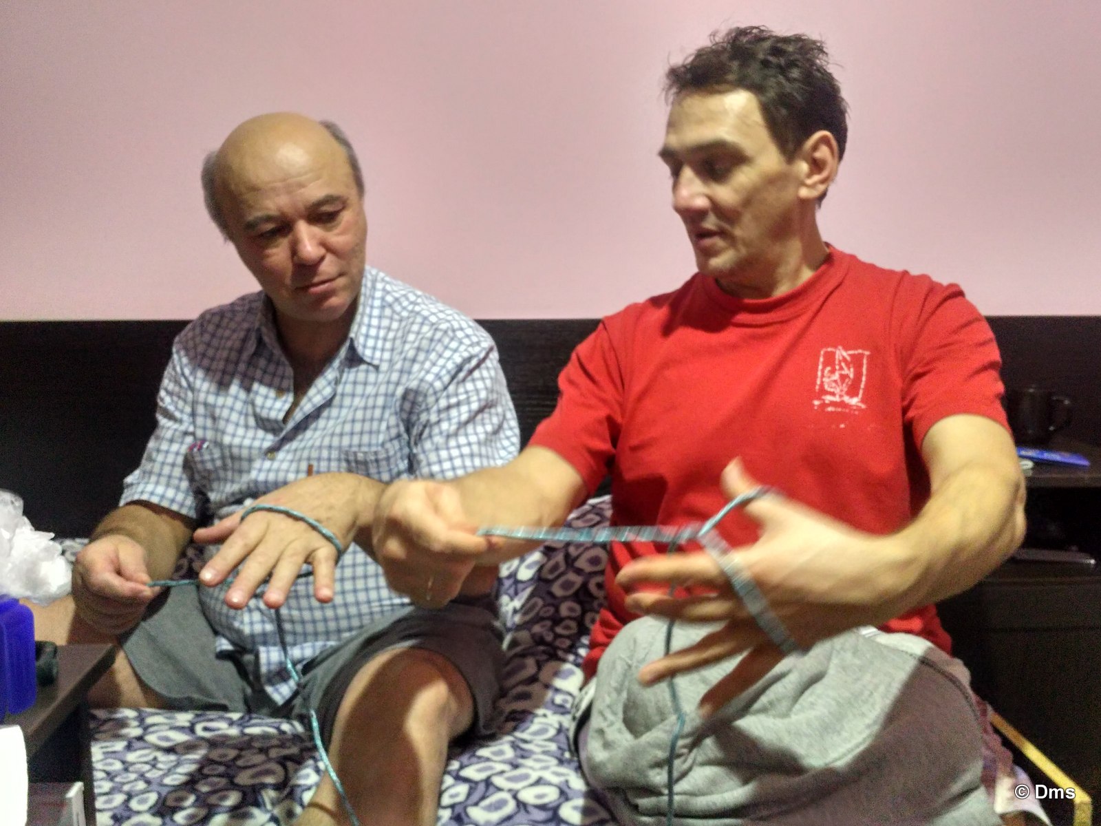 Натянули веревку для сушки лыжного барахла, там и булинь пригодился.
